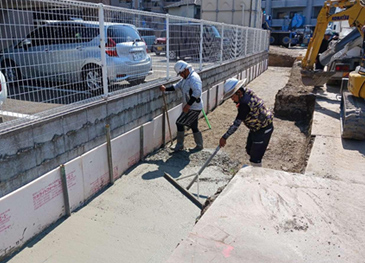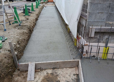 境界塀ベースコンクリート打設状況