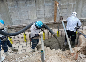 境界塀立上りコンクリート打設状況